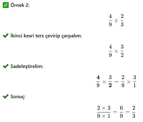 ✔ İkinci kesir ters çevrilerek çarpma işlemi yapılır.